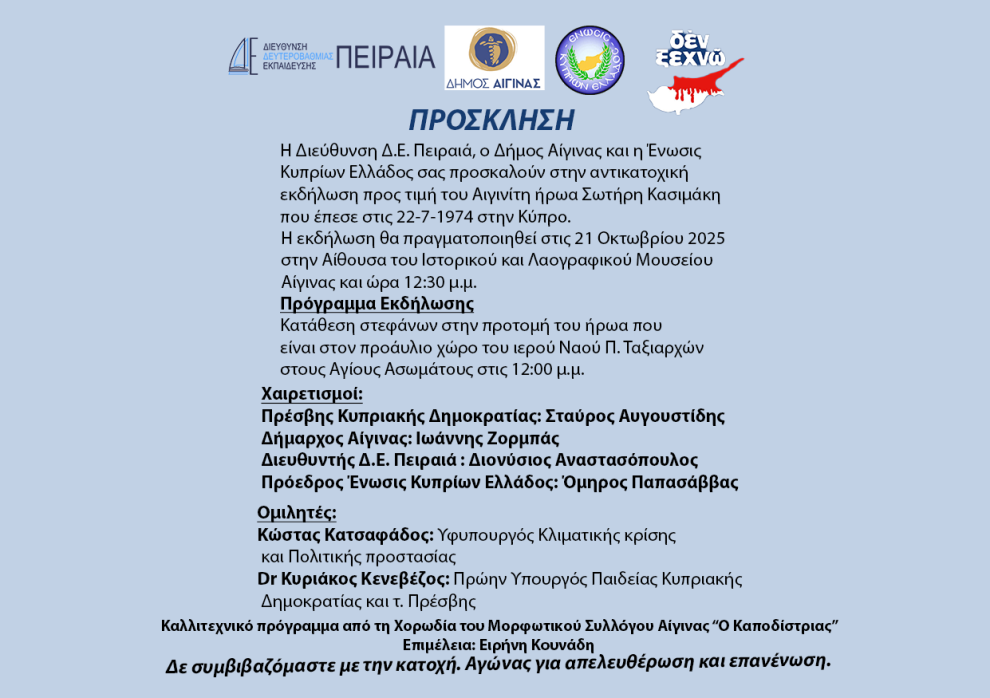 ΑΝΤΙΚΑΤΟΧΙΚΗ ΕΚΔΗΛΩΣΗ ΑΙΓΙΝΑ 21/10/2025 – 12:30