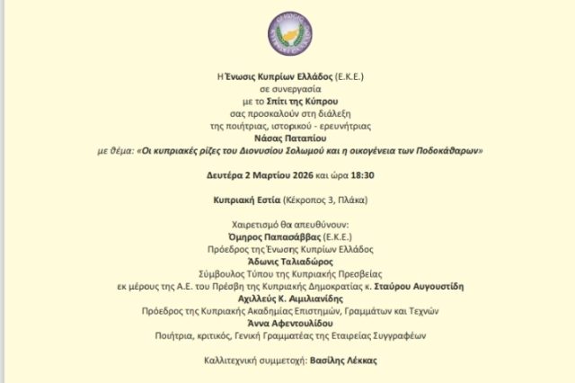 ΠΕΜΠΤΗ 29/05/2025 – 19:00 – ΚΥΠΡΙΑΚΗ ΕΣΤΙΑ