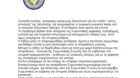 ΑΡΧΙΚΗ • ΔΙΑΦΟΡΑ • ΕΙΔΗΣΕΙΣ ΚΑΤΑΔΙΚΗ ΤΗΣ ΧΡΗΣΗΣ ΤΟΥΡΚΙΚΩΝ ΤΟΠΟΝΥΜΙΩΝ ΣΤΙΣ ΚΑΤΕΧΟΜΕΝΕΣ ΠΕΡΙΟΧΕΣ ΜΑΣ 09/12/2025