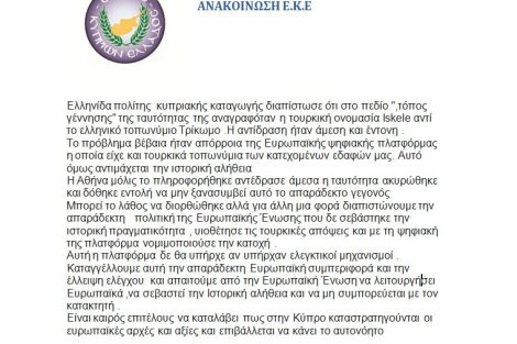 ΑΡΧΙΚΗ • ΔΙΑΦΟΡΑ • ΕΙΔΗΣΕΙΣ Καταδίκη της παράνομης ανακήρυξης του ψευδοκράτους στα κατεχόμενα εδάφη της Κυπριακής Δημοκρατίας 13/11/2025